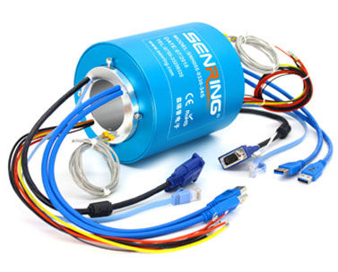 帶航空接頭過孔滑環 帶USB、VGA、以太網網線網線過孔滑環 防水防爆滑環 過孔氣電一體滑環 轉子和定制都帶法蘭+編碼器線+防水滑環 防水滑環